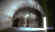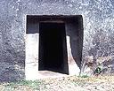 平面図は、ロマース・リシ窟の入口部分と 隣のスダーマ窟の内部とを 合成してある。まずA の進入路を掘り、礼拝室兼寝室と思われる B 室(約 6×10m)を掘り出し、さらに 円形のストゥーパを祀ったと思われるC 室を掘り出した。 硬い花崗岩(日本の御影石)を ノミだけで彫って これだけの空間をつくるのは、難事業であったことだろう。