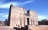 その表面は神々のレリーフ彫刻をはじめとしてさまざまな装飾要素で飾られ、神殿全体の外観はピュロンで決定される。それ以外の諸室はすべて塀の中に包み隠されていて、中心となる祭室の上部が聳え立つわけでもなく、外からはまったく見えない。内部に入ってみても中央祭室は奥まった所にある暗い小部屋にすぎず、いったいこの建物は本殿というべき中央祭室をそっちのけにして、入り口の門ばかりを巨大にして飾りたてたのは何のためかと不思議な印象にとらえられる。