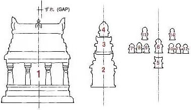 つまり、このマンダパの4本の柱は、それぞれが柱脚部に 北方型の4寺院を背中合わせにして包含しているのである。