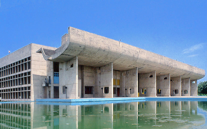 The Vidan Sabha (Parliament) in the Capital Complex designed by Le Corbusier, Chandigarh, 1960.