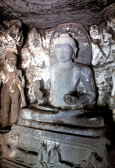 ヴィハーラ窟の第7窟の本尊のブッダ像、アジャンター、5世紀