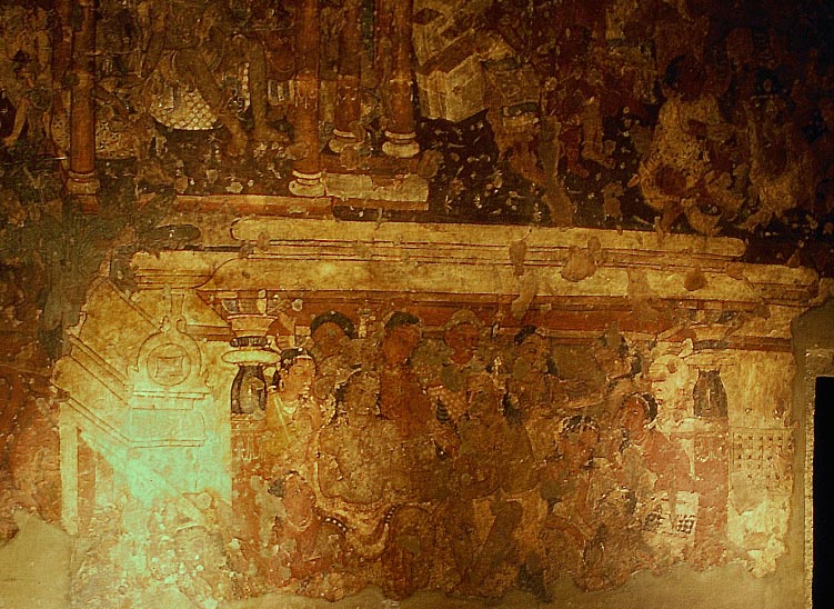 ヴィハーラ窟の第1窟における壁画、アジャンター、6世紀