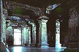 6世紀から9世紀にかけて造営されたエローラーには 仏教とヒンドゥ教、それにジャイナ教の石窟寺院群が ほぼ一列に、2kmの長さにわたって並んでいる。石窟内部には仏像、神像、ジナ像が所狭しと彫刻されているが、それらの彫像が 最も立体的にしてダイナミックな姿をとるのが ヒンドゥ窟である。ついには岩山を上部から彫刻して丸彫りの単岩寺院を造営するに至った。これはもはや洞窟ではないので、石彫寺院と呼ぶ。