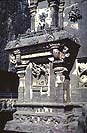 というのは、このカイラーサ寺院は 南方型の寺院建築様式をしていて、しかもモデルとなった石造寺院が 前期チャルキヤ朝の都、パッタダカルに現存しているからである。南インドではパッラヴァ朝とチャルキヤ朝が 宿命の対決を続けていたが、8世紀半ばにデカンのラーシュトラクータ朝が覇権を握り、両王朝の文化をも我がものにした。チャルキヤ朝はパッラヴァ朝の都、カーンチープラムの工人を奪って パッタダカルの寺院建設に従事させていたが、ラーシュトラクータ朝はさらにその建築家や工匠を エローラーに連れてきたろうと考えられる。