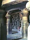 これと似たものは エローラーの第 29窟 で、仏教の石窟寺院の一元的な空間構成とは異なり、多元的で惑乱的な内部空間となっているのである。