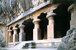 第1窟のファサードも未完成のままで、柱の並ぶ外側にはほとんど彫刻がない。当時、石窟寺院は木造の建物に囲まれていたようだが、それらの建物も今はない。岩山を掘ってつくった石窟寺院は、内部がひんやりとして涼しく、雨と暑さをしのぐ場所であるが、そればかりでなく、「神の教えはこれを大地の懐(ふところ)に求めよ」というヒンドゥ教の教えを反映するものでもあった。