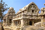 マハーバリプラムには、村から数百メートル南の砂地の中に、花崗岩の石塊を彫刻した一連の石彫寺院が残されていて、まるでおとぎの国のような牧歌的な印象を与える。これらは「ラタ」とよばれるが、ラタというのは荷車や馬車を意味することから、神の乗り物である寺院や山車(だし)をもそうよぶようになった。ここでは5つの堂と動物たちが、まるで行列をするように並んでいる。5つのラタに彫り出された建築形式は、当時の南インドの木造寺院を模していて、今日ではパッラヴァ朝建築の「岩の博物館」として、貴重な遺構となっている。