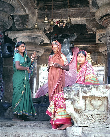 ヴィルーパークシャ寺院のナンディにお参りする人々、パッタダカル。