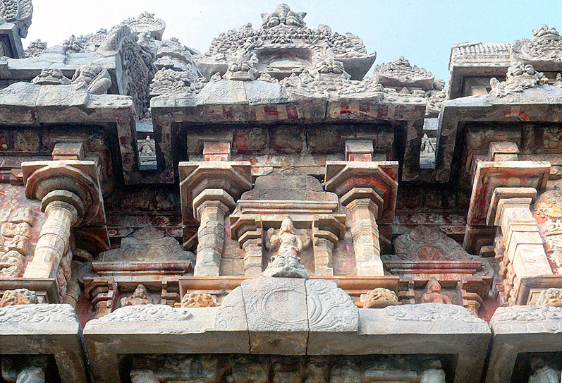 ブリハディーシュワラ寺院のヴィマーナの、彫刻で満ちた壁面詳細。