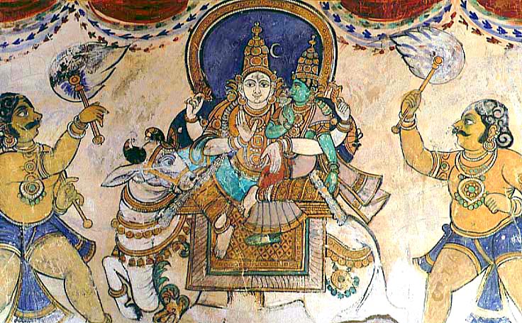 近世のナーヤカ朝時代の壁画、17世紀、ブリハディーシュワラ寺院の回廊