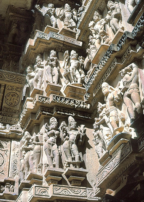 ヴィシュワナータ寺院の壁面を飾る、おびただしい壁面彫刻、カジュラーホ。