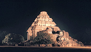 スーリヤ寺院の廃墟、1976年の夜景、コナーラク