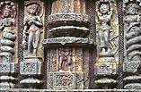 壁面にはおびただしい数の人像群が刻まれており、そこにはカジュラーホの寺院のように、男女が抱擁しあう「ミトゥナ像」も多く見られる。これもタントリズムの影響で、男女の性的結合が一種の吉祥のシンボルであったのだろう。聖室の外壁面にはジャガモハン側を除く三方に壁龕(へきがん)があって、緑泥岩(りょくでいがん)による3体の端正なスーリヤ神像が安置されている。