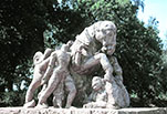 境内の戦士と馬の像