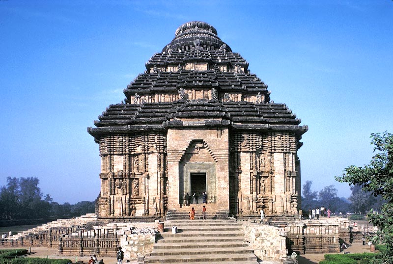 朝陽をあびるスーリヤ寺院のマンダパの正面、コナーラク