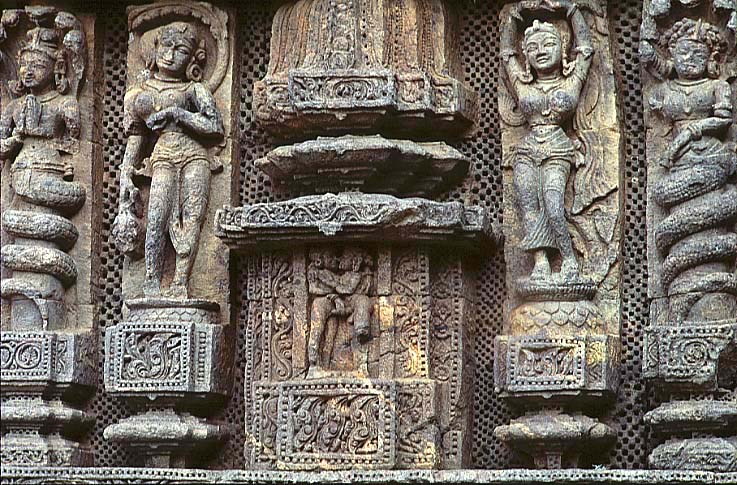 スーリヤ寺院の壁面を埋め尽くす彫像群、コナーラク。