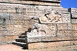 南インドのハンピの都市遺跡は、14世紀前半にヒンドゥ教を奉ずるヴィジャヤナガラ王国の首都として建設が始められた。以来、王宮をはじめとして数々の寺院がここかしこに造営され、16世紀半ばにイスラーム勢力に攻略されるまで「勝利の都」とよばれる大都会であった。今日では遺跡の北側を流れる川の古名であるハンピの名でよばれている。1981年以来修復が進められて、しだいにその全貌が明らかにされつつあり、多くの人々の努力によって風化と壊滅の危機から救われた貴重な遺跡が訪問者を魅了する。 |