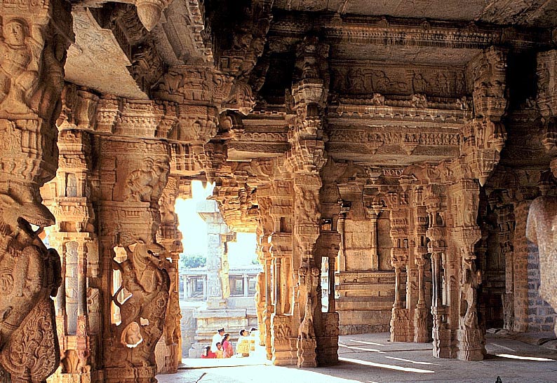 きわめて幻想的な、ヴィッタラ寺院のマンダパ内部。ハンピ。