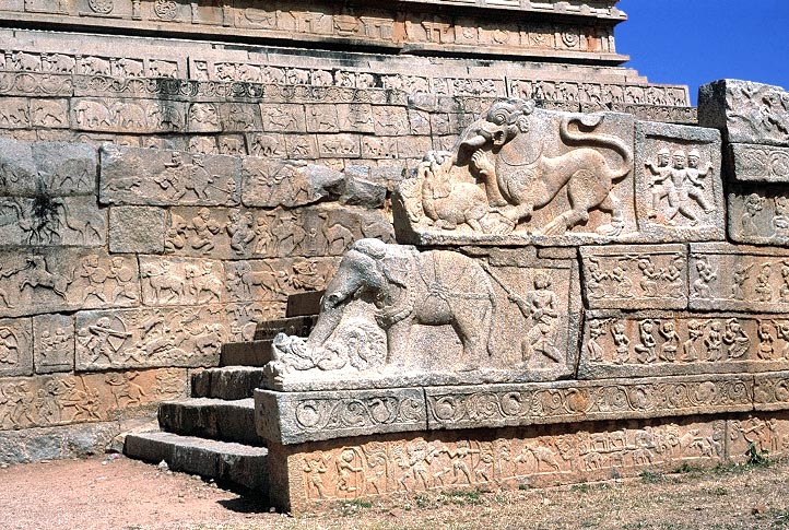 王の基壇(マハーナヴァミ壇)のレリーフ彫刻、ハンピ、16世紀。