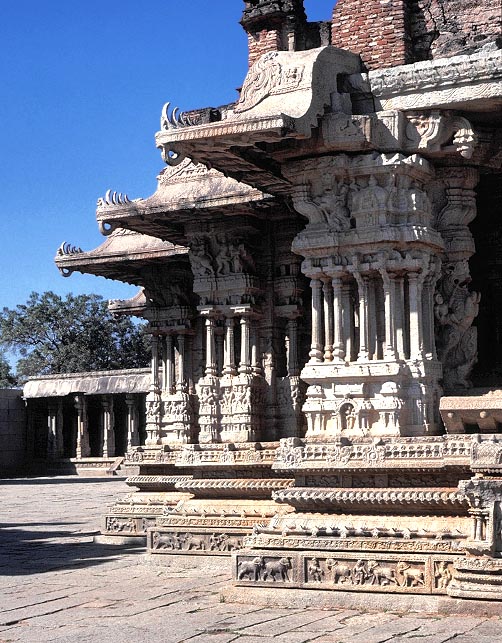 寺院地区のヴィッタラ寺院のオープン・マンダパ外観、ハンピ、16世紀。
