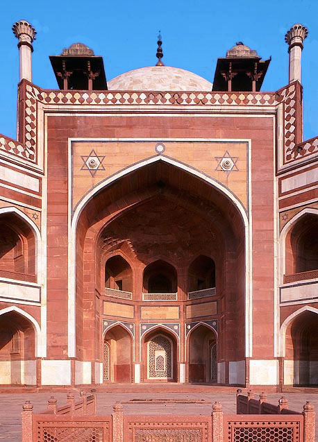 基壇の上から廟の大イーワーンを見る、フマユーン廟。
