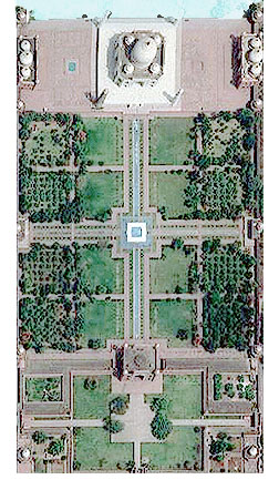 タ-ジ・マハル廟と庭園の航空写真と 平面図