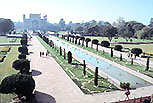![]() 廟から大門の方を見返した四分庭園と、廟の東側にある迎賓館とチャトリ