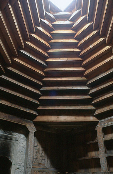 その発展形、ジョージア(グルジア)の木造民家のハザラシェン天井。
