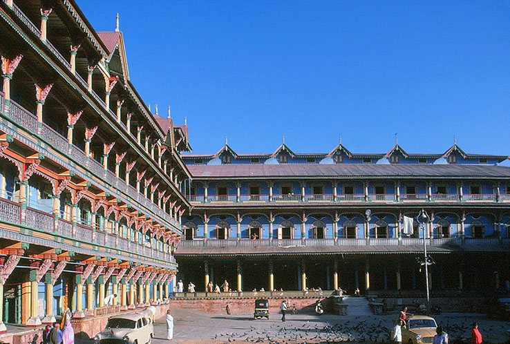 写真の背後に、近年のリバイバル様式の寺院が独立して建っているが、