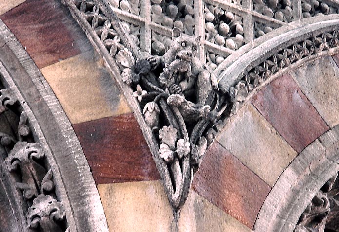チャトラパティ・シヴァ-ジ-駅舎の石彫装飾(鼠を咥える猫)