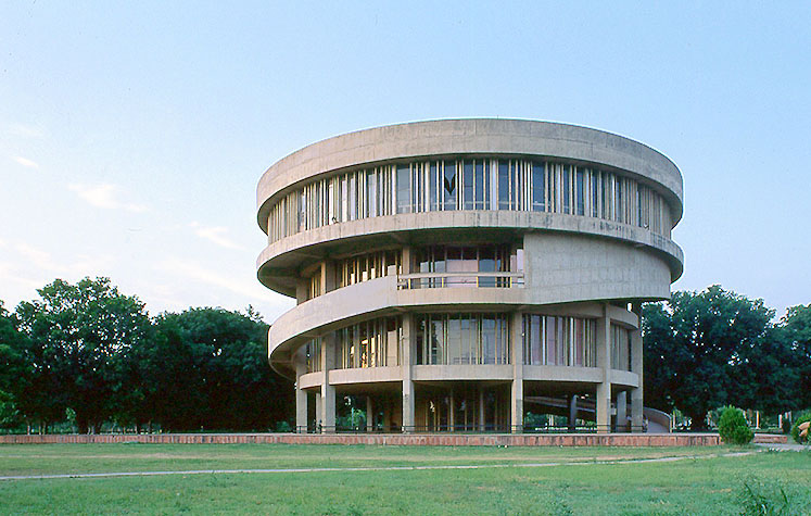 ル・コルビュジエ風の、パンジャーブ大学・学生会館 第14セクター、1960年代末、設計:B・P・マトゥール B・P・マトゥールはチャンディーガル設計チームの一員だった。のちに独立して、この建物を設計した。