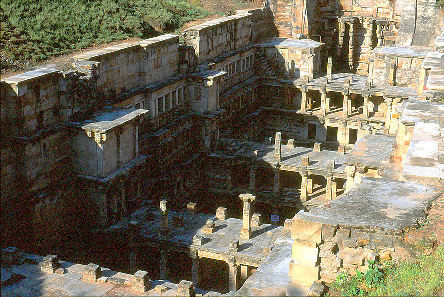 王妃の階段井戸(ラーンキ・ヴァーヴ)、入口側から 井戸シャフトの方を見る。