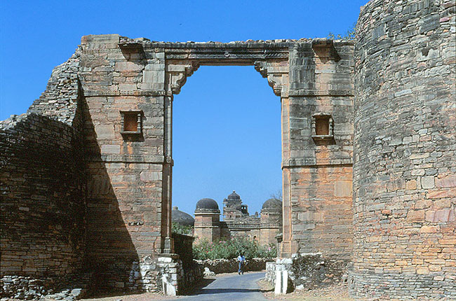 チトルガルの 城塞の ラール・ポル(門)。後方に 宮殿群が見える。