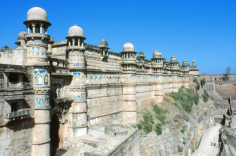 グヮーリオルの 城塞。 右下に 城門からの登り道。