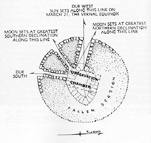 チチェン・イッツァの天文台, 906(メキシコ) エル・カラコル(El Caracol 蝸牛)と呼ばれ、下部の直径は11m。 遠くに見えるのは ククルカンのピラミッド(カスティーヨ) チチェン・イッツァの天文台の平面図(ウェブサイトより)