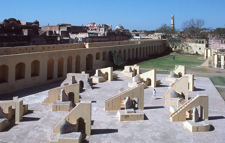 ジャイプルの天文観測所(ジャンタル・マンタル) 12基から成るラーシ・ヴァラーヤ・ヤントラ(黄道儀、天球経緯儀) Râshi Valâya Yantra 群 (Twelve Zodiac Instruments) これらはサムラート・ヤントラの小型版に見えるが、実際は全く異なっていて、 サムラート・ヤントラの斜面が北極を指しているのに対して、 ラーシ・ヴァラヤは黄道上の12の星座を指している。