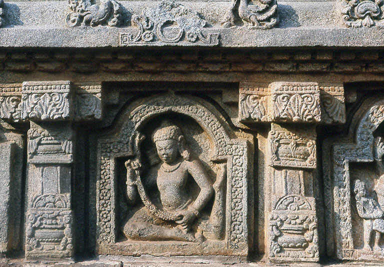 There are stone sculptures only at the base of Temple-2, eastern next to Monastery-7 and 8. A statue of Buddha, 6th -7th century.