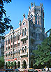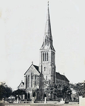 ボンベイが繁栄するのは 19世紀になってからで、インドの拡大した英国領土を カルカッタ管区、マドラス管区と3分割する ボンベイ管区の中枢都市となった。さらに スエズ運河が開通して(1869)英本国との航路の距離が短縮されると、インド亜大陸の東側の カルカッタ、マドラスよりもイギリスに近くて便利であったから、名実ともにヨーロッパからの 「インドの門」となったのである。 英国国教会にゴチック様式を復興させるべく、ロンドンに「英国教会建築協会」が設立されたのは1848年だった。建築家 オーガスタス・ウェルビー・ピュージンらによって定められたゴチック・リバイバルの原則を インドで最初に適用したのが、アフガン戦争の戦没者を慰霊して ボンベイの南端(コラバ島)に建てられた「アフガン記念聖堂」と通称される 聖ジョン聖堂 (Afgan Memorial Church of St John the Baptist) である。建築家で技師でもあったヘンリー・コニベア (Henry Conybeare, 1823-84) はインドで最初のネオ・ゴチックの聖堂を ローコストで、着工から11年かかって1858年に竣工させた。1850年から54年にコニベアがイギリスに帰国していた時には、ジョン・オーガスタス・フラーが工事の監理をし、コニベアの帰国後も続けた。内外ともインド産の石の肌で厳密に造られ、ステンドグラスから祭壇に至るまで 完全なゴチック様式に仕上げられている。58mの高さの鐘楼は 1865年の増築である。