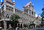 スティーヴンスは また VT駅の真向かいに ボンベイ市の行政庁舎を設計した。この行政庁舎によって、ヴィクトリアン・ゴチックのボンベイの町が完成したとも言えるが、しかし 彼も時代の趨勢には逆らえず、ゴチック様式で生涯を貫くことはできなかった。行政庁舎には 中央塔をはじめとして、いくつもの球根形のドーム屋根を載せて、インド・サラセン様式との折衷を図ったのである。