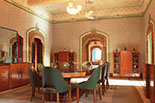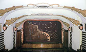 ![]() ムンバイのエロス映画館と、リバティ映画館 このほかにも、リバティ映画館や リーガル映画館、ニュー・エンパイア映画館、メトロ映画館などがある。新しい娯楽の館としての映画館は、最新流行のアールデコ・デザインに うってつけの建物種別だったのだろう。それは 世界的傾向であった(アメリカ映画『マジェスティック』には よく表現されている)。 一方、映画館ほど くっきりとした形にはならないが、白い、初期近代建築としてのアールデコのアパートやホテルが、マリーン・ドライブ海岸沿いに多く建てられた。もともとは バック・ウォーターであったが、埋め立てによる市域の拡大とともに きれいなカーブの海岸線を作って ボンベイの新しい顔となり、そこにアールデコの新しい建物が並んで、アメリカの「マイアミ・デコ」に次ぐ、多くの「ボンベイ・デコ」の街並みとなったのである。が、鮮明にアール・デコ様式を示すと思えるものは、あまり多くない。ボンベイのアール・デコは 急速に失われつつある という危機感から、ユネスコ世界遺産への登録申請が行われたのであろう。 アールデコのインテリアとして、ムンバイでは適当なものが撮影できなかったので、参考として、ムンバイに遠からぬ ワンカーネルとモルヴィの新宮殿(20世紀)の例を掲げておこう。