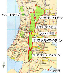 オーヴァル・マイダーン(楕円広場)の南には クーパリッジ・マイダーン、北側には クロス・マイダーンと アーザード・マイダーンが造られて連続し、南北2キロにわたる一大グリーンベルトを形成した。ニューヨークのセントラル・パークにあたる。このグリーンベルトがボンベイを東西に二分し、東側のフォート地区は19世紀のヴィクトリアン・ゴチックの旧市街、西側はマリン・ドライブに面する20世紀のモダーンな新市街になる。今回のユネスコ世界遺産リストへの登録は、この両者を合わせてムンバイの近現代都市遺産として評価、保存しようとするものであった。 インドにおいて ヴィクトリアン・ゴチックの立役者となったのが、英国におけるゴチック・リバイバルの代表的建築家である ジョージ・ギルバート・スコット (George Gilbert Scott, 1811-78)だった。彼はインドには来住しなかったが、オーヴァル・マイダーンに面してボンベイ大学の評議員会館(講堂 Univercity Convocation Hall)と 大学図書館、時計塔(University Library and Rajabai Clocktower)を、完璧なゴチック様式で設計し、以後のボンベイにおけるヴィクトリアン・ゴチックの手本となった。