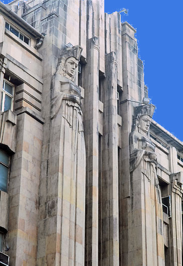 ファサードの人体彫刻は N・G・パンサールによる石彫。