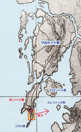 その南端部にフォート(城砦)がつくられ、城壁で囲まれたボンベイ市となる。