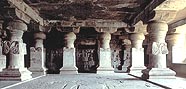 前2世紀からはアジャンターを初めとする仏教窟が続々と開窟され、約 1,200を数える全石窟寺院の 75パーセントを仏教窟が占めていた。中でも最高傑作とされるのはボンベイの東方の カールリーにあるチャイティヤ窟 である(2世紀)。プランは前方後円形で、身廊と側廊を分ける2列の柱が立ち並び、半円の中心部にストゥーパが彫刻されている。それぞれの柱の頭部にはペアになった男女が前向きの姿で彫刻され、この石窟全体に晴れやかな記念性を与えている。