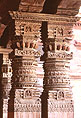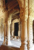最も形式の整っているのは、最初に建てられた パールシュヴァナータ寺院である。しかし敷地が狭いために、入口の前面に せっかくの<トラナ>(記念門)が建てられているのに、あまりにも引きがなさすぎる。この寺院の両側には敷地いっぱいに、ごく細長い寺院が 増築のような形で建立された。こうしたプランは、他に類例がない。 様式的には いずれも、10世紀から 13世紀にかけてグジャラート地方で発展した「ソーランキー様式」を踏襲していて、アーブ山のデルワーラ寺院群 と基本的には同じである。アーブ山では すべてが白大理石で造られていたが、ここでは すべてが黄砂岩で建造され、また異なった味わいを見せて魅力的である。それにしても、西インド全体で何百年も同じスタイルで建てられた寺院を見るにつけ、インド人の保守性を強く感じるのである。