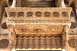 このことは、ジャイサルメルの建築の構成原理を 端的に示している。つまり、ジャイサルメルの建物はすべて石造であっても、それは根本的に木造起源なのである。宮殿も寺院もハヴェリーも、組積造としてのアーチの原理は使われていず、構造的には 木造的な柱−梁構造で建てられている。寺院のホールや 墓廟のドーム屋根でさえも、アーチの原理ではなく、インド的な 持ち出し構造で造られている。そして木に ほどこすような彫刻パターンを、そのまま 石の部材にほどこしたのである。