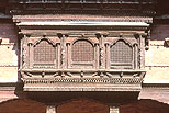 黄砂岩による民家のバルコニーと、ネパールの出窓