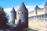 ジャイサルメルの城塞と、カルカソンヌの城塞 ジャイサルメルの城は、軍事施設と支配者の宮殿だけでなく、市民が住む城内町まで組み込んだ「城塞(シタデル)」として、シリアの アレッポの城塞と、フランスのカルカソンヌの城塞を 思い起こさせる。アレッポの街並みの中に スックと聳える岩山の城塞は、ジャイサルメルの城塞とよく似た構図であるが、城内の街並みはまったく残っていず、モスクや宮殿などが散在するのみである。バグダードの古都も残らない今、城郭都市の姿を最もよく伝えるのは、ジャイサルメルとカルカソンヌが東西の双璧ではないだろうか。日本には城下町はあっても城内町はないから、こうした城塞は見ることができない。 ジャイサルメルの城塞は 1156年に、平地から 76メートルの高さに聳える トリクータの丘に建設された(トリクータとは、「3つの峰」の意である)。ロデルヴァから移された住民は すべて城内に家を建て、当初はカーストごとに 地区を決めて住み分けたという。1577年から 1623年にかけて、スラジ・ポル(太陽の門)、ガネシャ・ポル(象神の門)、ハワ・ポル(風の門)が建造された。スラジとはスーリヤ(太陽の神)であり、朝日の昇る側、つまり東門に名付けられる。入口の上部には太陽の円盤と、トラナ・アーチが装飾として刻まれている。 城壁は高低 2重に作られ、その間に衛兵の巡警路がとられている。 R・A・アガラワーラによれば、城壁の石積みはモルタルを用いずに、正確な切石で積まれているという。城郭の造形を印象的なものにしている 半円形の稜保の数は 99。そのうち 92は砲台を設けるために、1633年から 47年にかけて建造された。稜保の内部は、衛兵の住居や武器庫として用いられている。城壁の上には 丸い石が並べられているが、これは飾りではなく、大砲が発達する以前の キャノンボール(砲弾)で、城壁まで迫った敵兵の上に 投げおろしたのである。