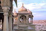 そうした墓地は公園のように整備されて一般に開放されたから、墓園として親しまれることにもなった。なかでもウダイプルの近郊のアハールや、ジャイプルの近郊のガイトールには壮麗な墓園が造られた。ジャイサルメルではそうした墓園が砂漠の丘の上にあり、奇妙になつかしい、不思議な眺めを作っている。そしてまた王侯の墓には年代が刻まれたので、その王国の歴史を知る上で大きな手掛かりを与えてくれるのである。