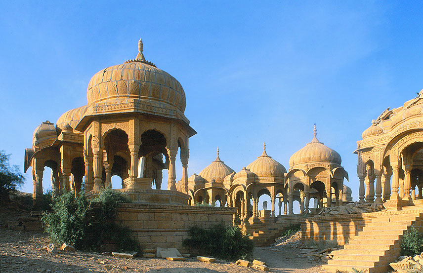 ジャイサルメルの バダ・バーグに建つ チャトリ群